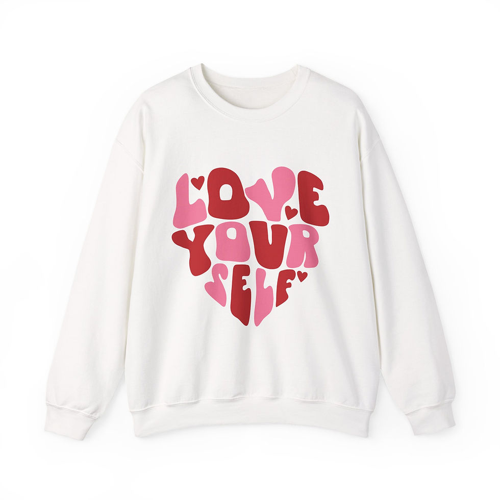 Love Yourself Crewneck Sweatshirt - Retro Heart Self-Love Graphic